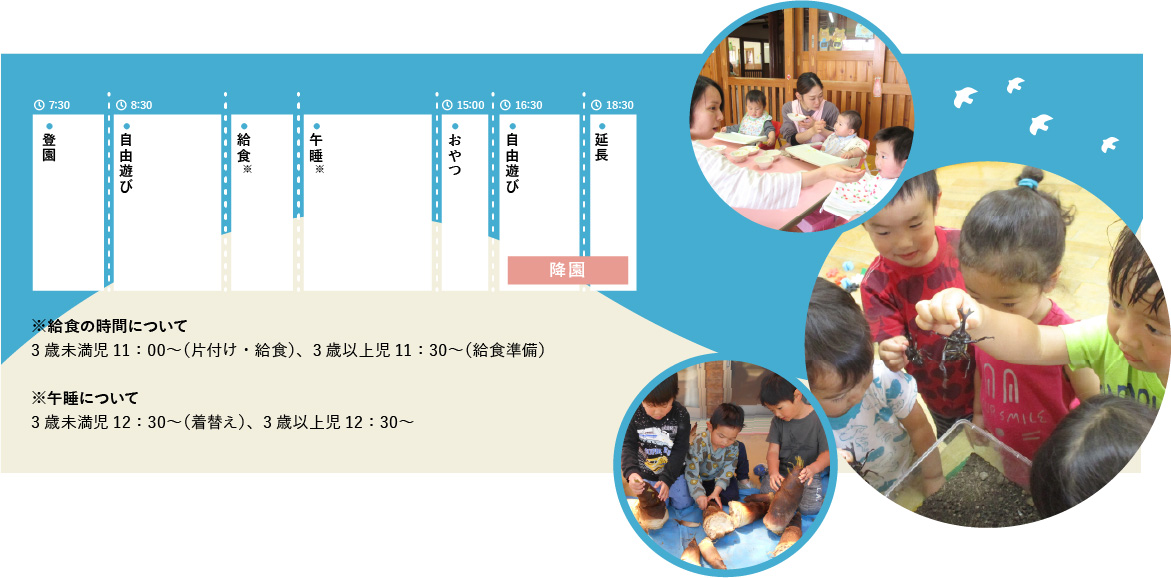 | 入所可能年齢 | 産休明け~小学校就学前 | |||