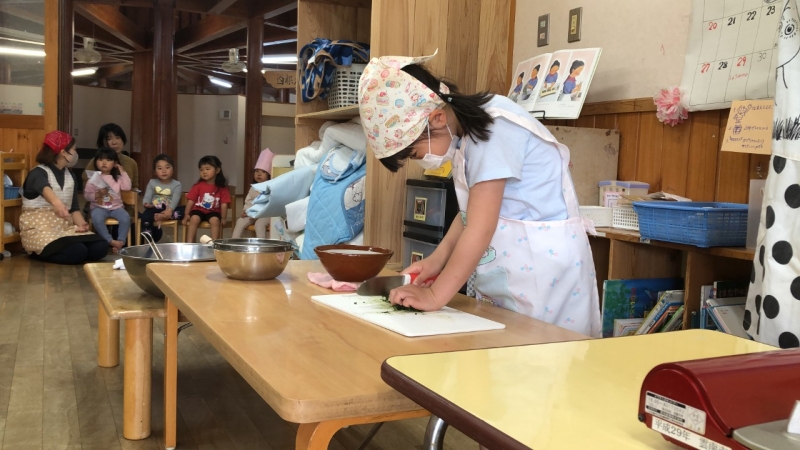 よもぎ団子作りをしました(ぞう、きりん組)